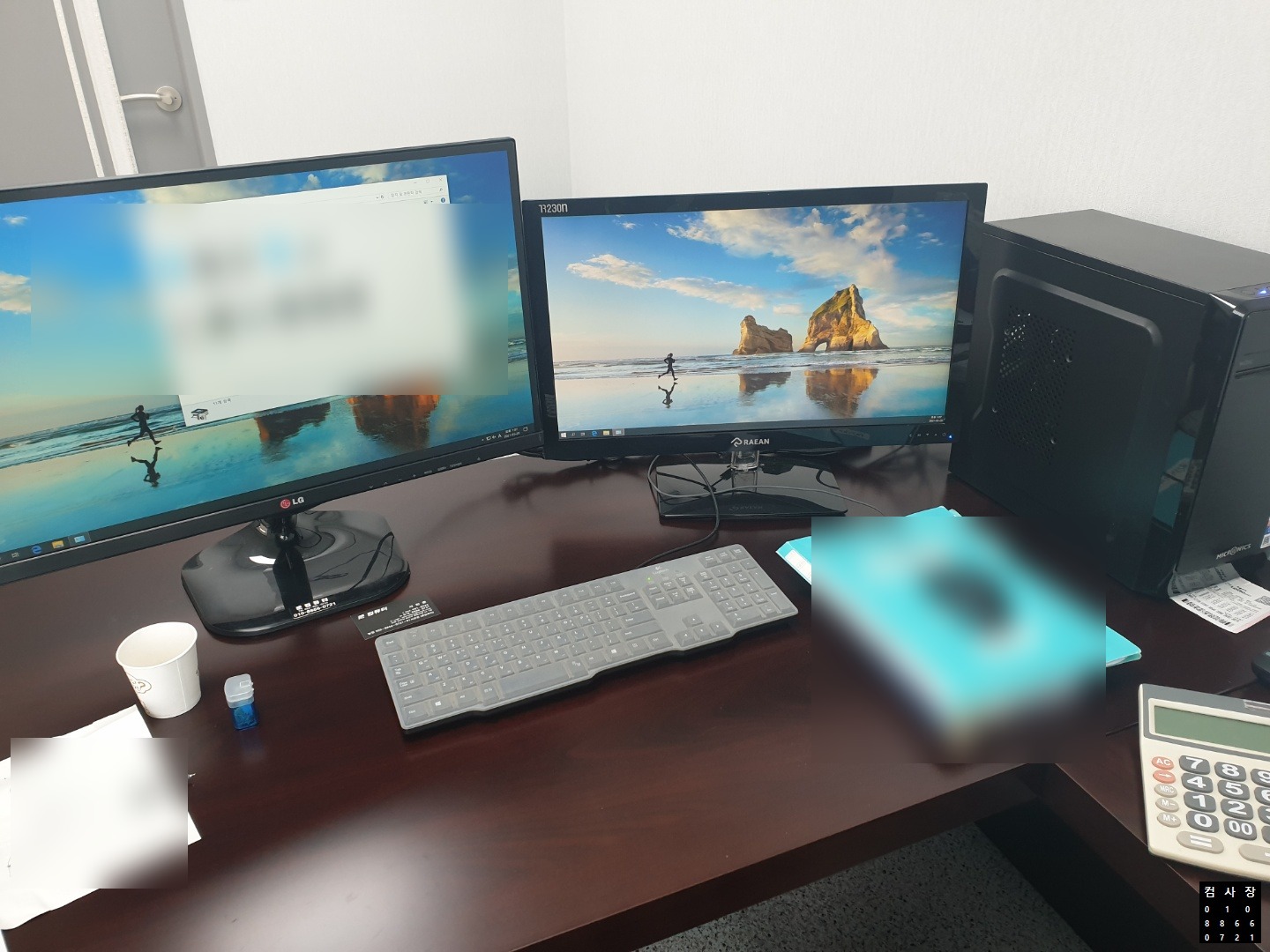 직원 컴퓨터 데스크에