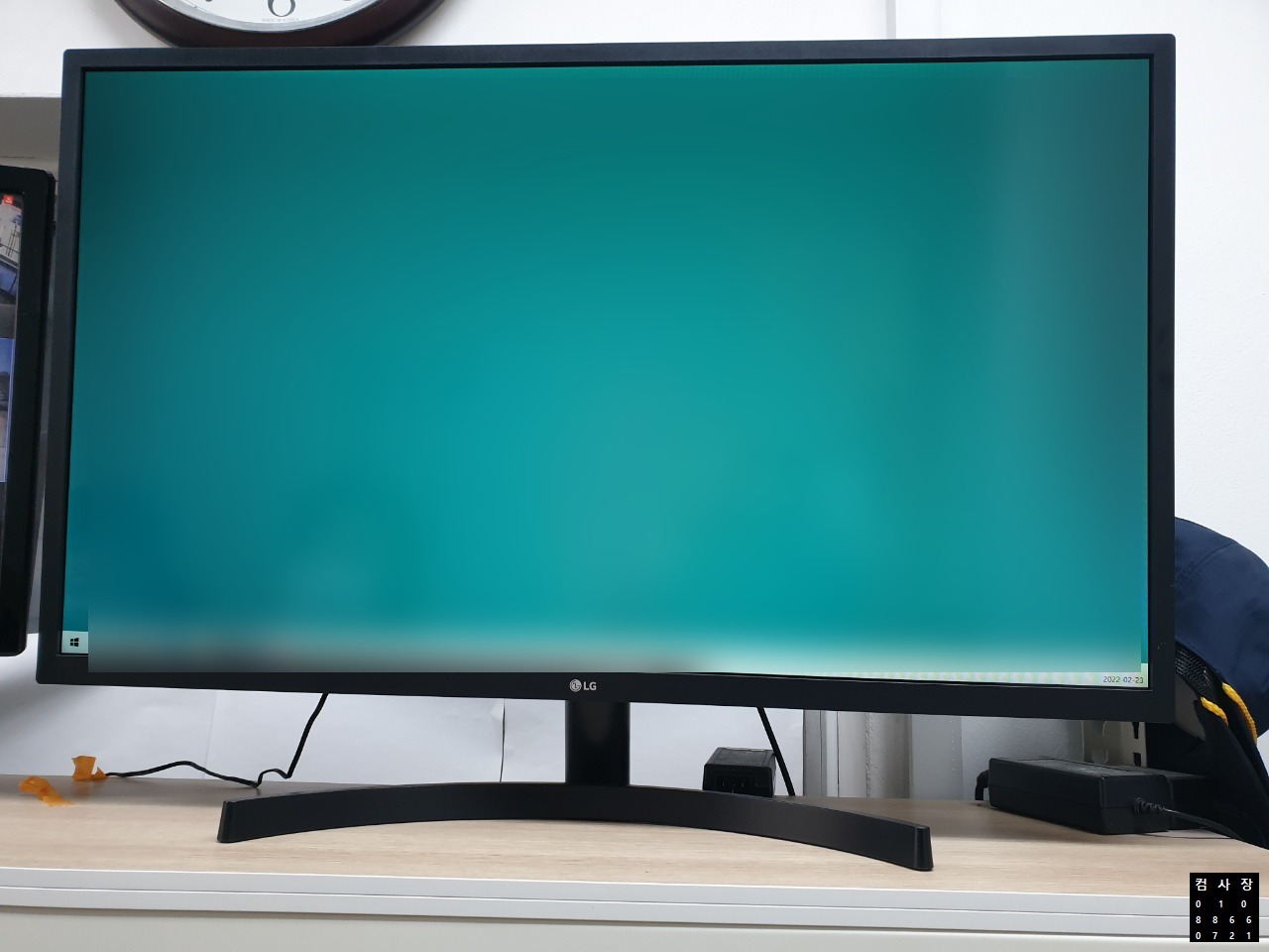 사무실 도착후, 관제용 32인치 설치하는동안