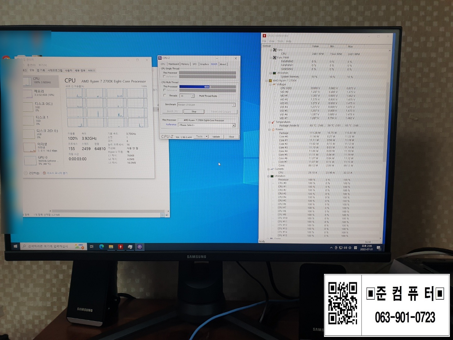 CPU-Z 벤치 테스트 확인.