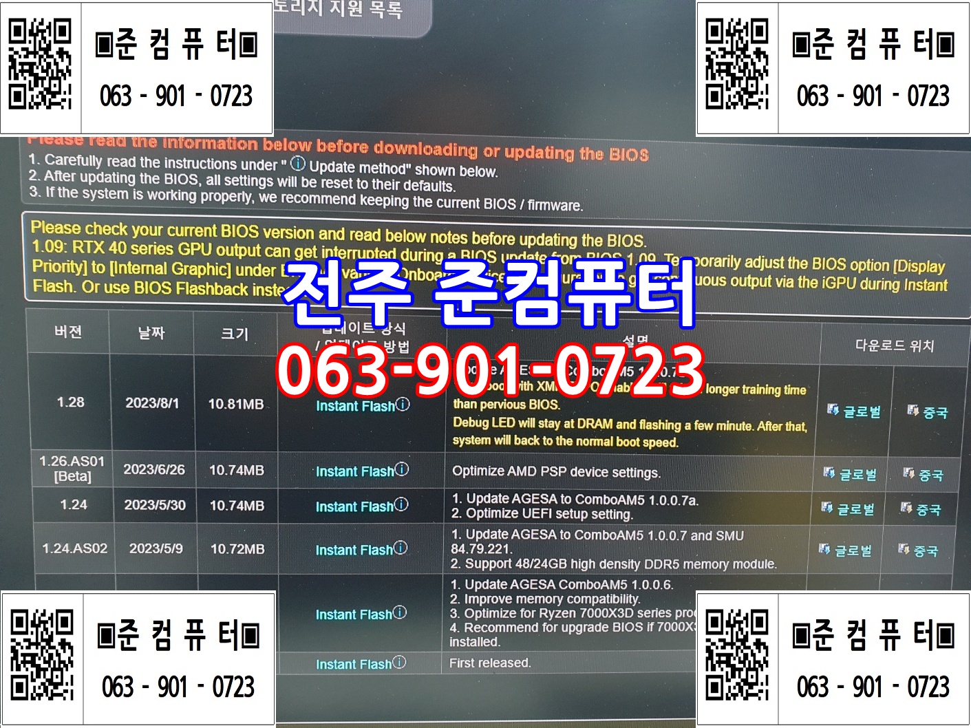 | ▣준컴퓨터▣ 전주 컴퓨터수리 빠르게 당일처리 효자동 로그인 비번풀기 중화산동 조립PC설치 서신동 모니터신호없음 매장 파워교체 SSD업글 (0) | 2023.09.05 |