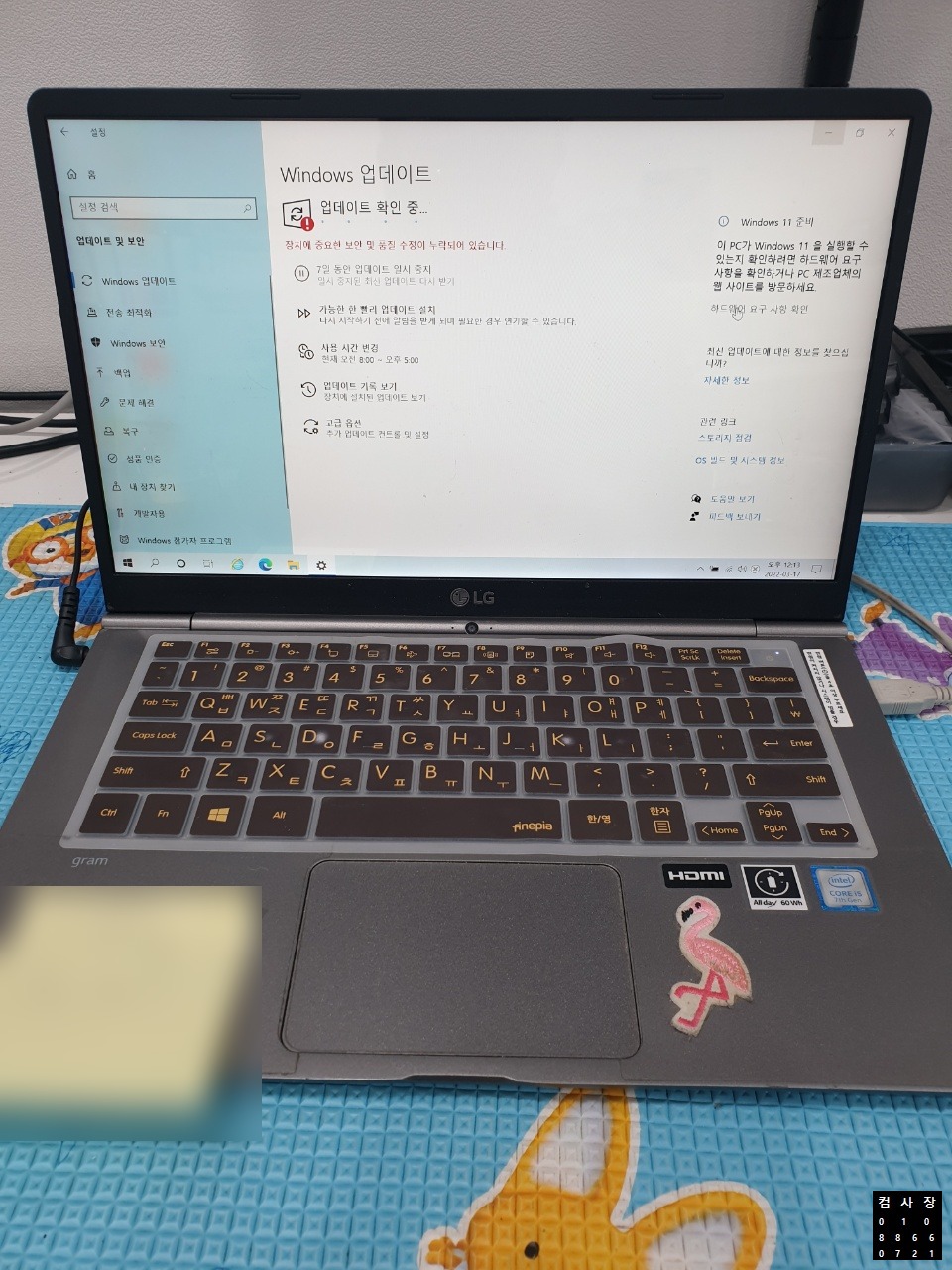 ▣준컴퓨터,전주조립컴퓨터,전주컴퓨터수리,LG 14인치 그램 14ZD970-GX5SK 윈도우 업그레이드▣