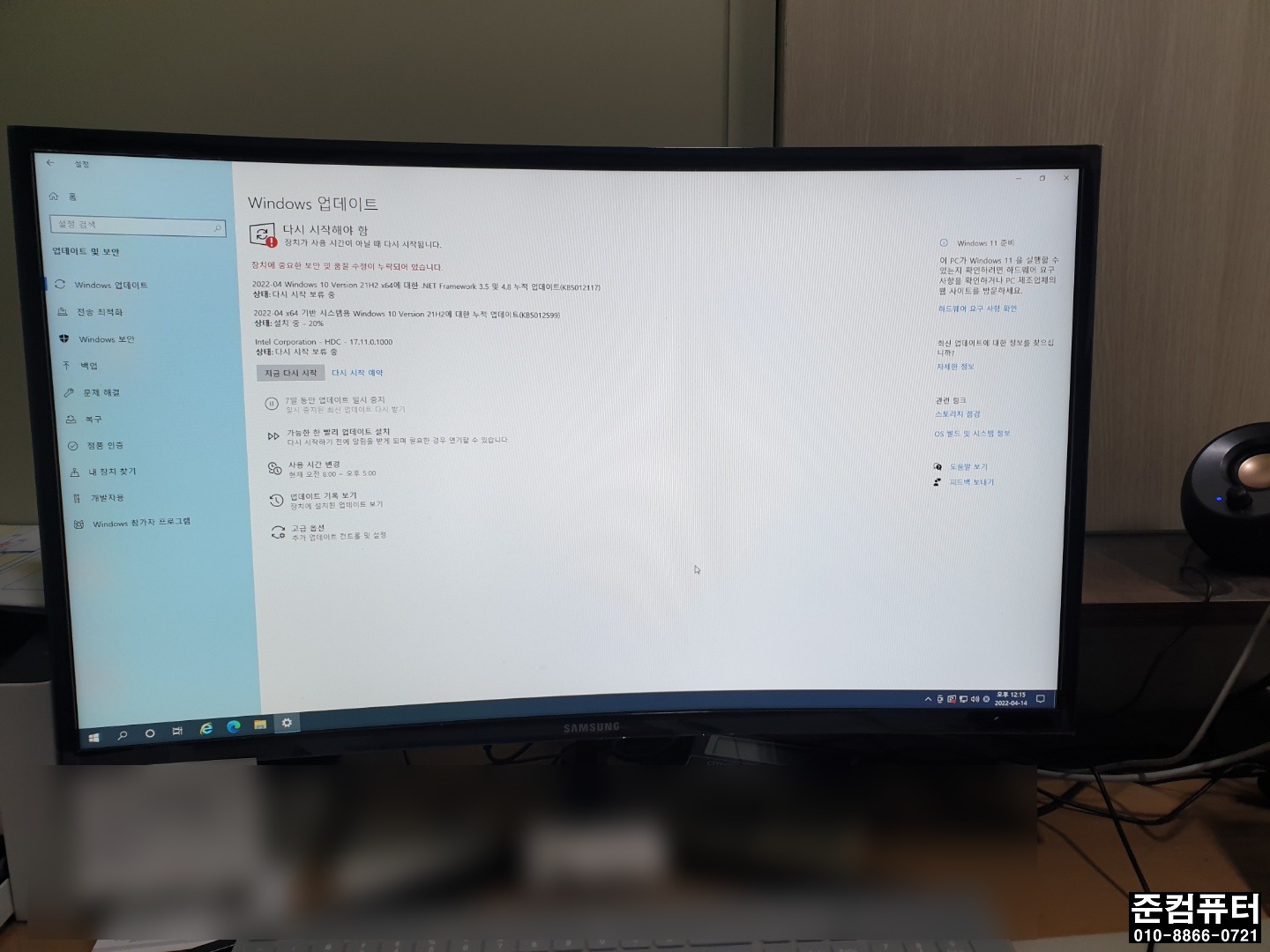 ▣준컴퓨터,전주조립컴퓨터,전주컴퓨터수리,12세대 조립후 안됨,출장 삼성컴퓨터 윈도두11프로에서 윈도우10프로 다운그레이드▣