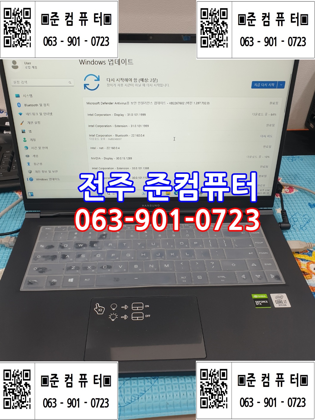 ▣준컴퓨터▣ 전주 컴퓨터수리 한성노트북 TFX5075G 무한로딩 윈도우부팅안됨 M.2 SSD교체